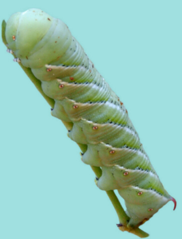 I had heard my father mention "tobacco worms" once long ago, but had never seen one up close myself. Suffice it to say, he didn't have anything nice to say about the little buggers  He related to me that he spent many hot muggy days in the fields, searching for & removing any little pesky worms; he also told me that they could spit tobacco juice at anybody who dared to disturb their feeding time, a fact that's confirmed by the Wiki article.