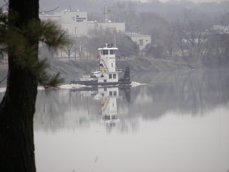 The second picture is of one of the smallest "tow boats" I've seen on the river. Kind of a misnomer since they really push the barges. Anyway. It was kind of cute.