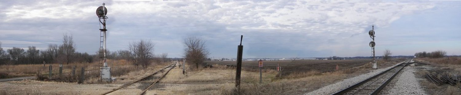 Here's another panorama of two converging railroad tracks. There's actually five converging tracks, but to include them all took far, far too much space. Anyway, I thought it looked interesting.