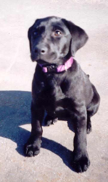 Here is my black lab this is an older picture but she hasn't grown much. She doesn't bark at all. She's actually to friendly otherwise she would have been trained as a border sniffing dog.