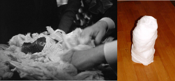 Having never mentioned movies, I was pleased to see a suspicious smile when he got to the batting and "Is this the falcon?  " as he felt around on the last wrapping, with a wider smile.