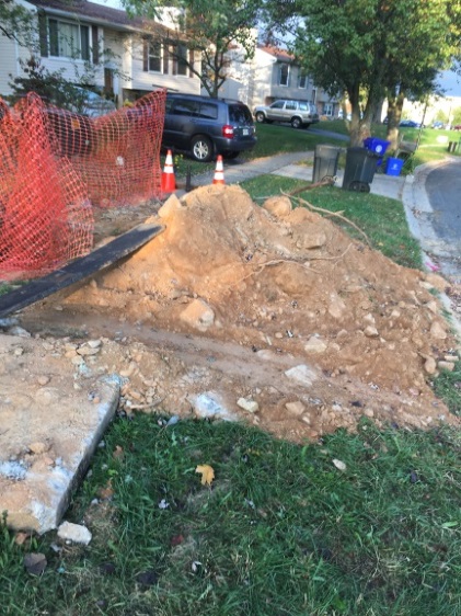 Then, the huge pile of dirt dug out by WSSC when they were looking for the shut-off valve: