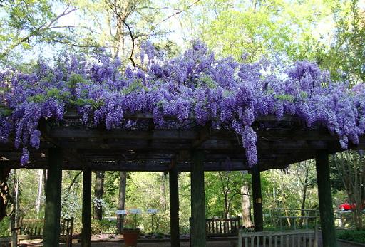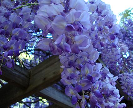 Here are a few pics of the wisteria that is growing wild all over our section of the world. The stuff truly grows like a weed and smells amazing when it first blooms. These pictures come from outside our apartment building, and the ones on the pergola are from the botanical gardens where it covers the entire top in the most amazing display.