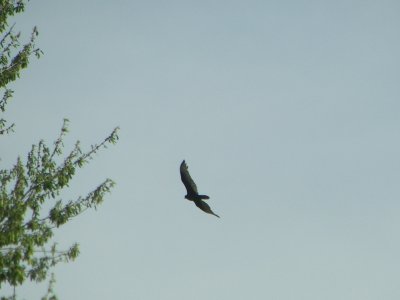 Attached is one of a hawk soaring over my wife and I when we went for a drive last week. Normally, when I try to get a picture of a bird in flight, it blurs terribly. This time, it actually didn't come out too bad ...