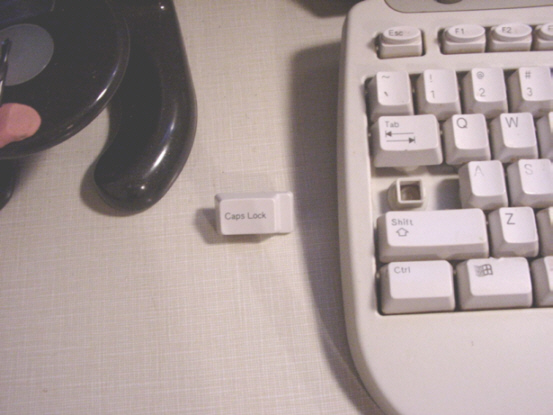 Worse than the Capslock is the freaking Windows key. I used to play a game on line called Everquest. Think Dungeons and Dragons online with about 4,000 people per server. Well it used to be that the Windows key would kick you out of the game. This is a royal pain in the ass when you're typing along fast and furious in the middle of a big fight with about 30 other people and all of a sudden BLOOP you're gone from the fight.