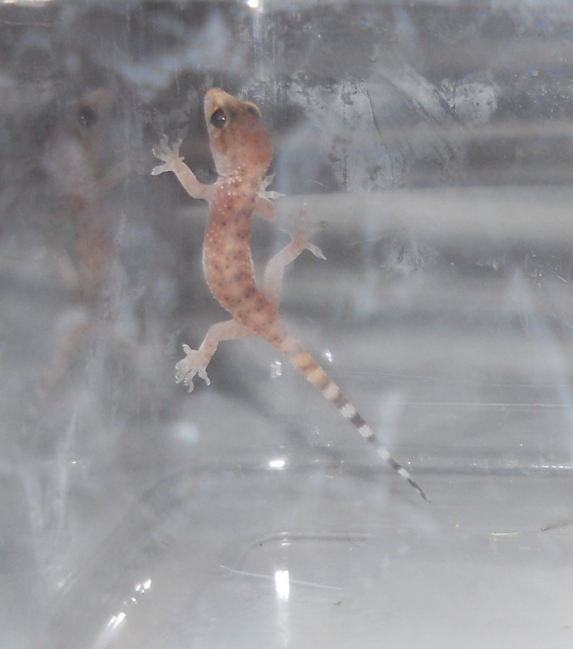 Mr. AZRH caught a baby gecko in the shower the other evening. I snapped a couple of pix before I set him free. You can see how tiny he is compared to the plate.
