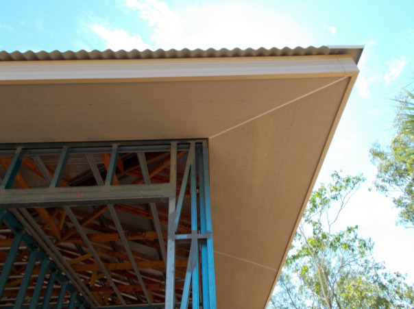 The first sheets of Colour-Bond steel have been attached to the walls.