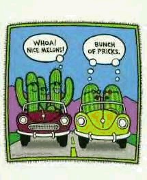 The cucumber "Man, my life sucks. When I get big, fat, and juicy, they cut me up and stick me on a salad."