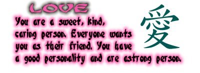 You are a sweet, kind, caring person. Everyone wants you as their friend. You have a good personality and are a strong person.